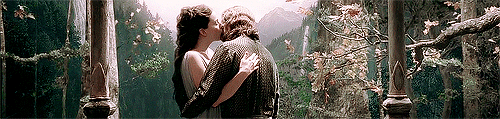 -Aragorn and Arwen. There's their kiss in the garden, which is incredibly moving and beautiful, their kiss in a flashback Aragorn has in The Two Towers, and their reunited kiss just because of the sheer joy in it. Liv Tyler and Viggo Mortensen play off one another well and really bring to life a ship that I've adored since I was a middle schooler who first read it in the Appendices, actually.